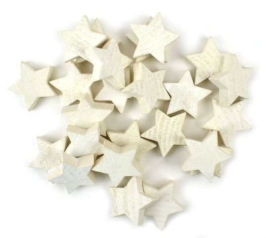 Hvězdičky dřevěné, 24 ks, 3 cm, bílé