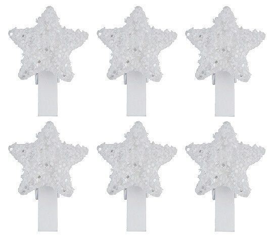 Hvězdy plastové bílé na kolíčku 3 cm, 6 ks