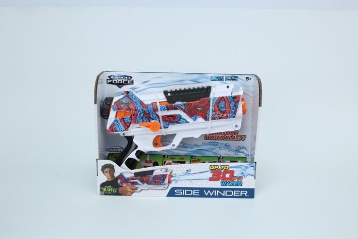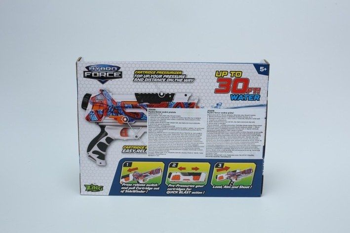 Boční nabíjení. Silný tlak vody. Dosah 9 metrů. 1, stiskněte uvolňovací spínač a vytáhněte kazetu z bočního části nabíjení 2, sejměte víčko. Naplňte čistou vodou z vodovodu. Znovu nasaďte víčko.