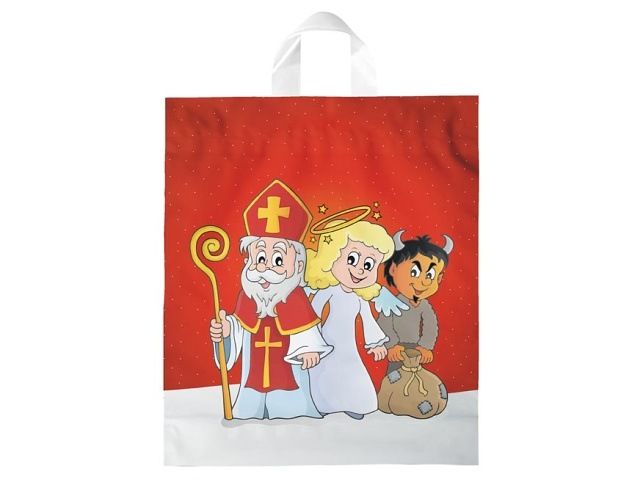 Nákupní igelitová taška s pevným uchem a obrázkem tří čertů Síla igelitky: 0,050 mm Uvedená cena je za 1 ks.