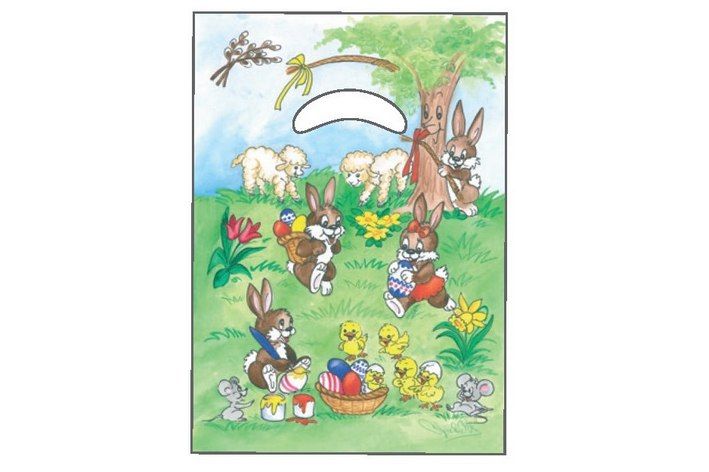 Igelitová taška 32x20x4cm velikonoční - 1.ZAJÍČCI POD STROMEM