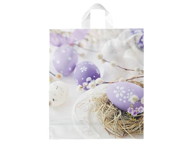 Celoplošně potištěná igelitová taška s velikonočním motivem a navařeným uchem. Síla igelitky: 0,050 mm