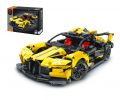 iM. Master Stavebnice auto sportovní žluté. Rozměry 33,6x15,7x10,2 cm. 1103 dílků. Otevírací dveře. Bez efektů, baterií a ovladače.