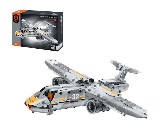 iM. Master Stavebnice letadlo vojenské. Rozměry 37,5x30,2x11 cm. 329 dílků. Vyklápěcí nákladová plocha, otočné vrtule.