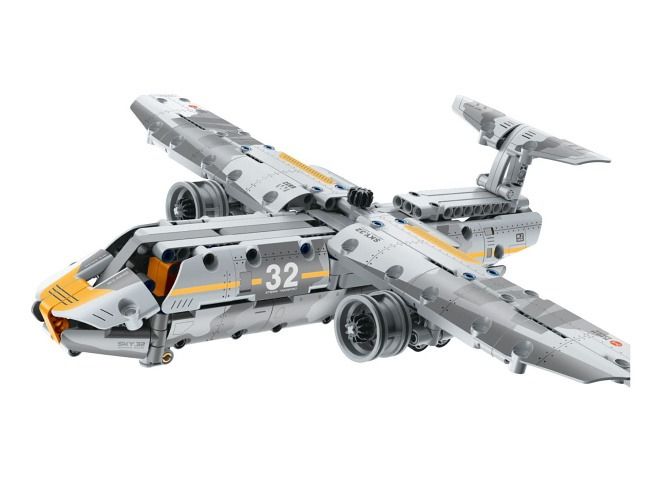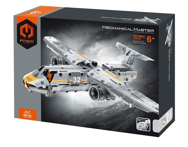 iM. Master Stavebnice letadlo vojenské. Rozměry 37,5x30,2x11 cm. 329 dílků. Vyklápěcí nákladová plocha, otočné vrtule.