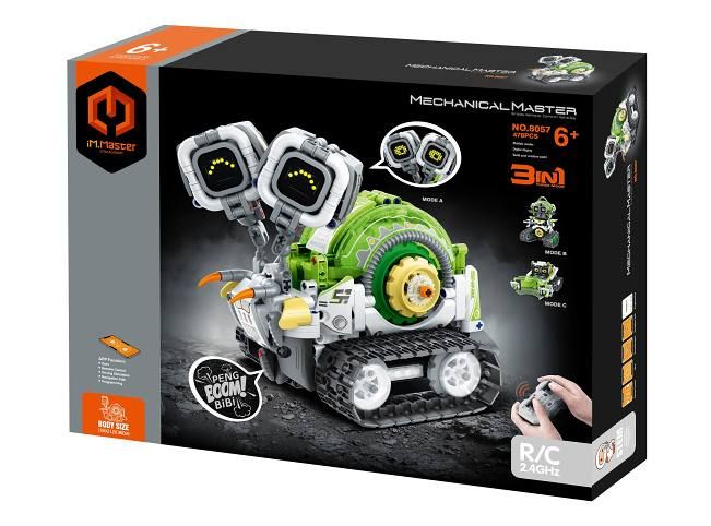 iM. Master Stavebnice robot hlemýžď 3v1 RC na dálkové ovládání. Rozměry 13,5x21,2x18 cm. 478 dílků. Ovládání ovladačem nebo smartphonem. Frekvence 2. 4GHz. Bluetooth propojení s mobilem. Aplikace pro iOS a Android. Světelné a zvukové efekty. Bateriový pack 300mah 7. 4V lithium do robota součástí, 2xAA do ovladače nejsou součástí. USB kabel součástí. Přepínač ON/OFF na ovladači a bateriovém boxu robota.