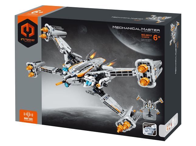 iM. Master Stavebnice vesmírná loď. Rozměry 42,3x26x35 cm. 1018 dílků. Součástí stojan. Bez efektů, baterií.