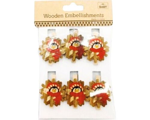 Dekorační dřevěné kolíčky s tučňákem a stromečkem.