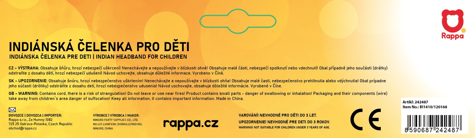 Indiánská čelenka, se kterou se proměníš v opravdového indiána! Tento parádní kousek je zdoben pestrobarevnými pírky a je skvělým doplňkem ke kostýmu indiána či na stylovou western oslavu! Český potisk. Barvy pírek se mohou lišit od vyobrazení.