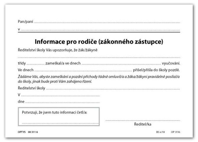 Informace pro rodiče, zákonného zástupce, list A6
