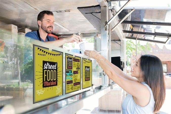 Řešení pro označení skleněných povrchů. Samolepicí informační rámy jsou vhodné k umístění nabídek na okna automobilů, výkladů nebo na skleněné povrchy obslužných pultů.