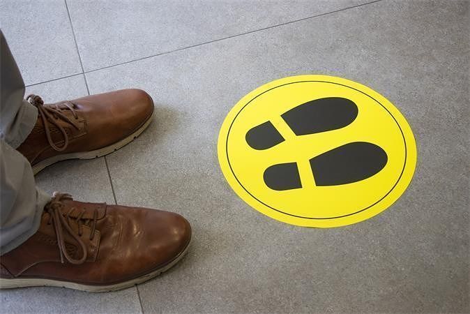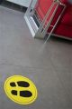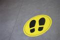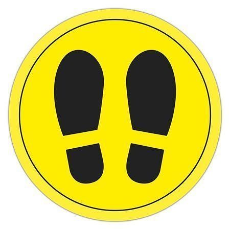 Kruhová samolepící značka se vzorem bot ideální pro snazší signalizaci v obchodech a míst služeb zákazníkům.