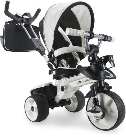 Dětská evoluční šlapací tříkolka s vodicí tyčí CITY MAX patří do nelicenční řady Innobaby, která je určena pro děti již od 6 měsíců. Naleznete v ní odrážedla, multifukční odrážedla, evoluční tříkolky a tříkolky. Moderní, designová, sportovně laděná evoluční tříkolka s kovovou konstrukcí a pogumovanými koly pro tichou jízdu, vypadající i jako sportovní kočárek, je díky vodicí tyči a ergonomicky tvarované podnožce pro nohy a dalším funkčním doplňkům, vhodná právě pro děti už od 6 měsíců. Tato tříkolka s dítětem doslova roste a přizpůsobuje se jeho vývojovým potřebám, což její největší výhodou. Z počátku dítě jezdí s nataženými nožičkami jako v kočárku, později je má položené na pedálech, ale díky vodicí tyči nemusí šlapat a může vnímat jen pohyb šlapacích pedálů a nakonec tříkolku plně obsluhuje samo. Veškeré doplňky se dají snadno montovat a demontovat.