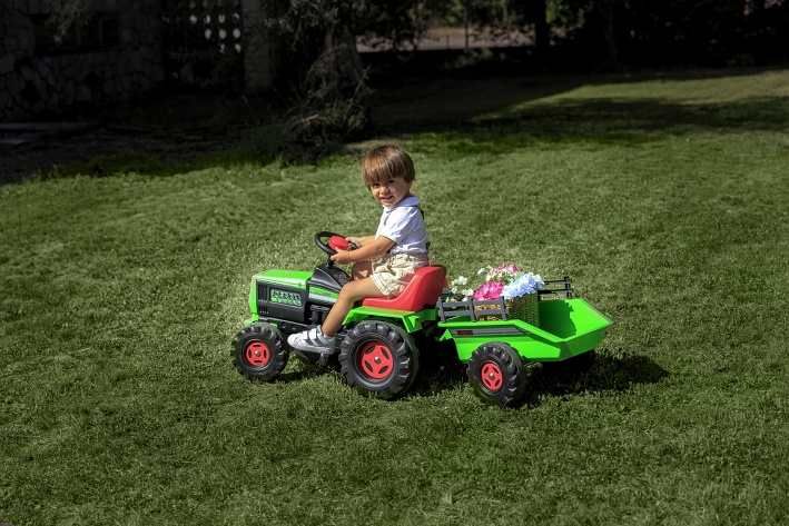 Dětský elektrický traktor BASIC 6V s přívěsem patří do nelicenční řady ELECTRICOS, která nabízí akumulátorová vozidla už pro děti od 12 měsíců a vyniká svými skvělými jízdními vlastnostmi. Traktor je vybavený zvukovou a světelnou sirénou. Jeho detailní a realistický design napodobuje legendární značku traktorů John Deere.