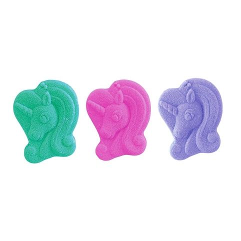 Balení bomby do koupele (3 x 15 g) s tvarem podkovy jednorožce Galupy. Součástí balení jsou 3 různé barvy (růžová, fialová a modrozelená). S vůní karamelového dortu.