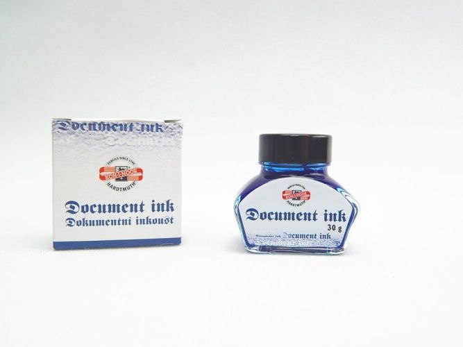 Inkoust plnící dokumentní 30g modrý ve skleněné lahvičce. Inkoust je vhodný do plnicích per, je světlostálý a odolný vlhkosti, nelze odstranit z papíru bez poškození papíru. Používá se v archivech , na psaní dokumentů a na matrikách Balení 50 g v PET lahvičce 30 ml ve skleněné lahvičce , v bombičkách á 7 g