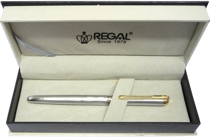 Inkoustové pero s konvertorem uložené v dárkové krabičce, lesklé vroubkované kovové tělo se zlatými doplňky konvertor lze vyměnit za bombičku (zásobník inkoustový) + dárková taška Regal