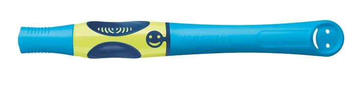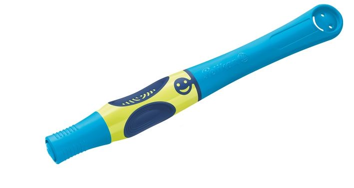 Modrý, speciálně navržený úchop pro ideální držení pera, pro praváky, ocelový hrot, jmenovka, 1 ks pera + 2 náplně, vymazatelný inkoust, v krabičce