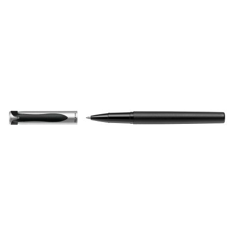 Inkoustový roller Stola II - K15, horní část ze stříbrného leskle lakovaného hliníkum spodní část z černé matně lakované mosazi, s klipem, sčernou náplní 338 M, v papírové krabičce