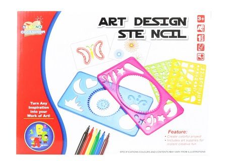 Sada obkreslovacích šablon. Obsahuje 4 obkreslovací karty, 7 obkreslovacích koleček, 6 fixů, 1 blok na obkreslování. Rozměry balení cca 28,5 x 21,5 x 4,5 cm. Věk 3+