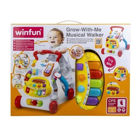 Interaktivní chodítko se zvuky a melodiemi, které skvěle motivuje děti ke hře a pohybu. Chodítko má odnímatelné piánko, telefon, vydává zvířecí zvuky, nahoře má madlo pro snadný úchop. Dále chodítko nabízí otočná kolečka, posuvné tlačítko s melodií, překlápěcí knížka, dětské zrcátko, chrastítko a rotující koule. Hračka vyžaduje 3 AAA baterie, jsou součástí. Na baterie: 3x AAA (jsou součástí balení)