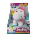 Interaktivní jednorožec Puffy. Puffy se chichotá a roztomile prdí, nemůže se přestat smát. Výrobek vyžaduje 3 AA baterie, které jsou součástí balení. Hračka je vhodná pro děti od 18 měsíců. Na baterie: 3x AA (jsou součástí balení)
