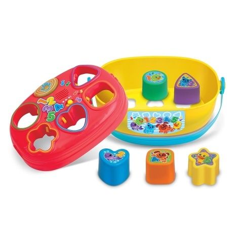 Vkládání tvarů se zábavnými zvuky. Hračka nabízí 5 barevných bloků, svítící tlačítko s melodiemi. Vložte tvary a budete odměněni zábavnými zvuky. Rukojeť pro snazší přenášení. Po stisknutí tlačítka se rozsvítí světélko a uslyšíte veselé melodie. Vkládačka má jednoduché otevírání víka navržené s ohledem na miminka. Hračka vyžaduje 2× AAA baterie, jsou součástí. Na baterie: 2x AAA (jsou součástí balení)