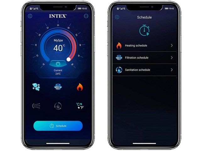 Součástí balení je praktické dálkové ovládání. Na jedno nabití zůstává funkční až po dobu 24 hodin. Jeho pomocí si snadno budete regulovat teplotu ve vířivce, a to v rozmezí 10 až 40 °C dle vlastních preferencí. Vířivka zvládne pomocí topidla s příkonem 2 000 W ohřívat vodu rychlostí 1,5 až 2,5 °C za hodinu.