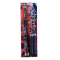 Tato sada japonského meče s příslušenstvím, by neměla chybět žádnému malému bojovníkovi! Meč s pouzdrem je dlouhý cca 42 cm a je zdoben zlatými a stříbrnými ornamenty.
