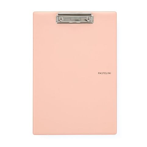 Plastová psací podložka v moderních pastelových barvách s kovovým klipem na dokumenty A4. Extra pevná lepenka potažená plastem.