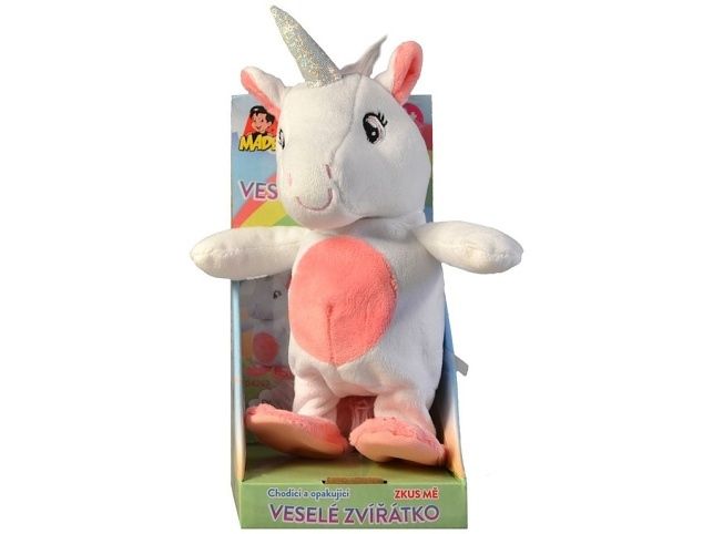 Opakující a chodící jednorožec. Veselé zvířátko opakuje, všechno co okolo sebe slyší a k tomu ještě chodí. Komunikuj se svým zvířátkem a užij si u toho spoustu skvělé zábavy. Výška zvířátka 23 cm. Zabaleno je v českém otevřeném boxu. Rozměry boxu 20 x 10 x 10 cm. Materiál: plyšDoporučený věk: 3+