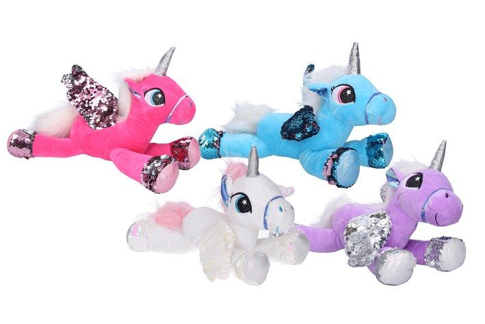 Jednorožec plyšová hračka. Velikost 30 cm. 4 varianty - modrá, bílá, fialová, růžová.