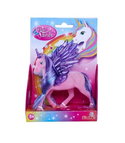 Figurka jednorožce s třpytivými poloprůhlednými křídly a rohem. 2 druhy. Velikost 11 cm.