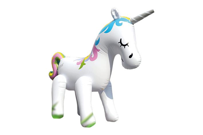 Jednorožec stříkající. Rozměry nafouknutého jednorožce 220x160x80 cm.