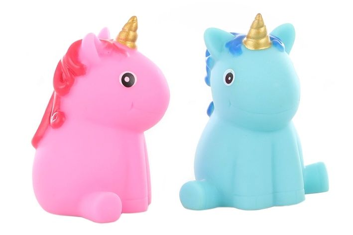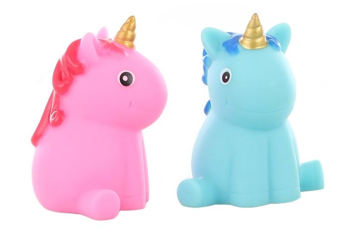 Svítící jednorožec do vany. Obsahuje neměnitelné baterie. Rozměry cca 7 x 5,5 x 4,5 cm. Baleno v igelitovém sáčku. Věk 3+