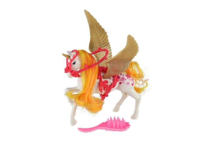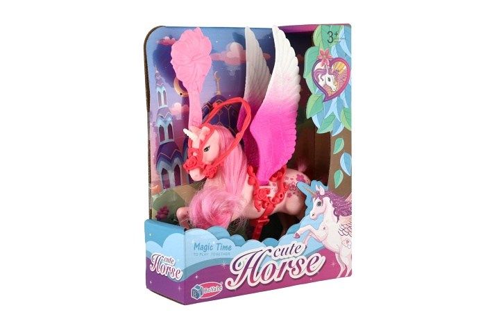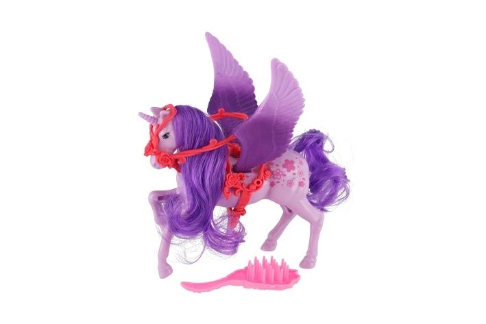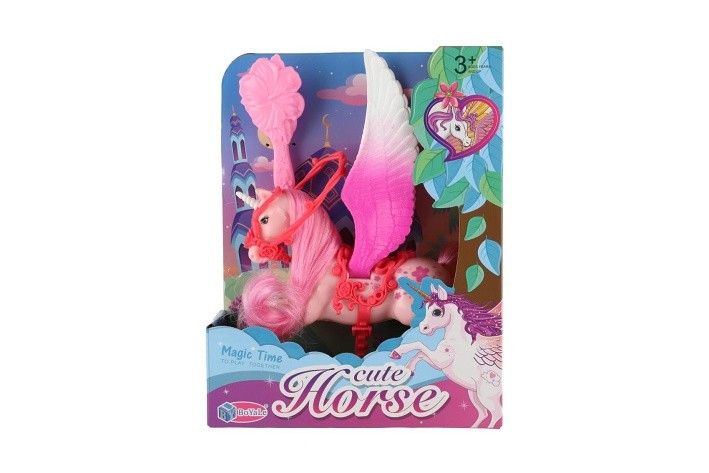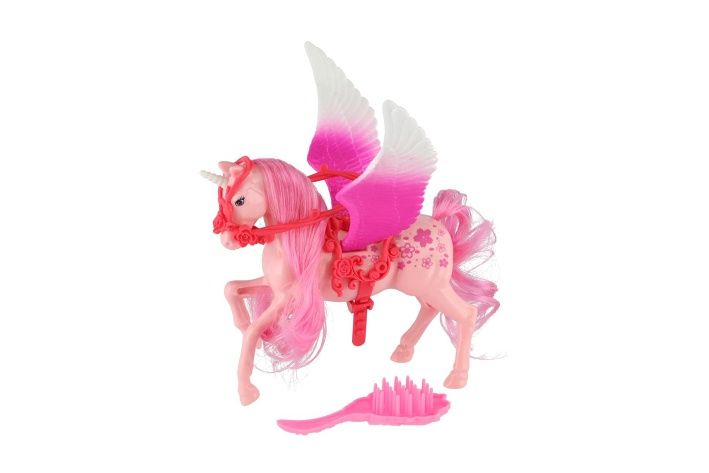 Jednorožec/kůň s křídly česací s hřebenem plast 22cm 3 barvy v krabičce 17x22x6cm