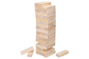Postav všechny kostky na sebe a vytvoř věž. Potom postupně jednu za druhou vytahuj a skládej nahoru abyste věž zvětšili. Jen pozor, aby se věž nezřítila! Jenga je hra plná nápadů a zručností, trénuješ s ní svou šikovnost, trpělivost i logické myšlení.