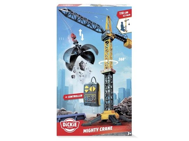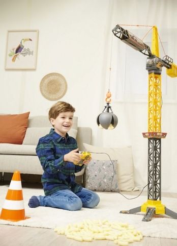 Jeřáb na kabelové ovládání (vpravo, vlevo, nahoru, dolů). Otáčí se o 360 stupňů, demoliční koule a doplňky. Barva černá/žlutá. Výška jeřábu je 110 cm.