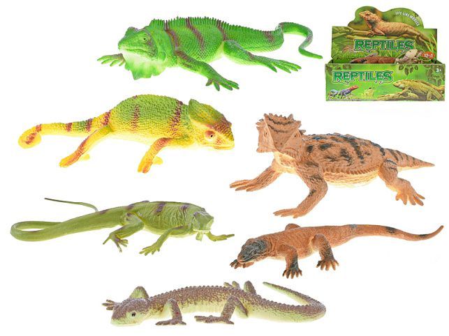Plastové figurky ještěrek, které vypadají jako živé. Pro milovníky plazů, kteří si libují v neobvyklých zvířatech. Ještěrka o velikosti 12-23 cm. Dostupných je 6 druhů - hnědá, hnědá s fleky, šedá, tmavě zelená s pruhy, světle zelená s pruhy, žlutá. Vhodné pro děti od 3 let.