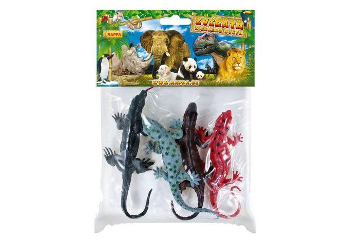 V sadě najdeš 4 kusy různobarevných ještěrek.