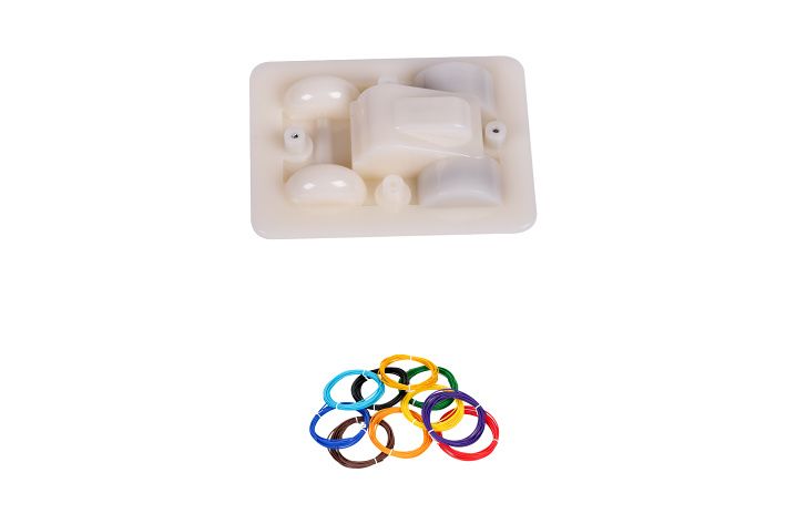Jezdící auta pro 3D pero WIKY - český obal. Součástí 1 jezdící zařízení s kolečky na zpětné natažení, 5 šablon, 17x2m barevných náplní, 1 podložka. 3D pero není součástí.