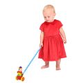 Dřevěný medvídek se při jízdě naklání z boku na bok. Rozměry: 7x7x55 cm.