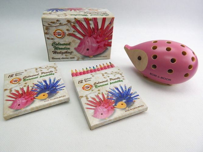 Ježek malý růžový – s 24 pastelkami – standardní a velice oblíbený výrobek. Je to velice vhodný a hezký dárek. Je oblíbený i u zahraničních zákazníků jako suvenýr.