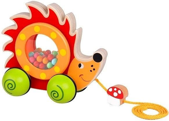 Ježek tahací – dřevěná hračka . Vezmi svého kamaráda na vycházku. Dřevěná tahací hračka ve veselých barvách .12m+