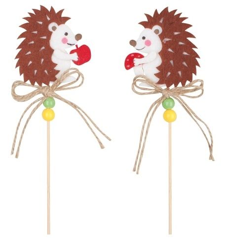 Ježek z filcu s muchomůrkou 6 cm + špejle, 2 ks