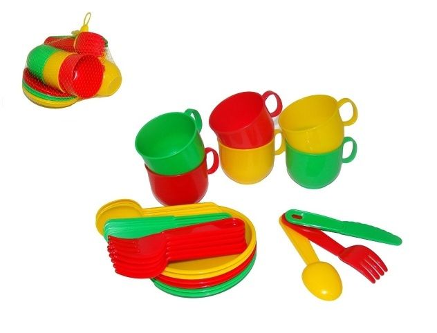 příbory, talíře a tác. Vyrobeno z kvalitního plastu v EU.