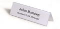 Jmenovka na stůl ve tvaru stříšky. S vyměnitelnými prázdnými vkládacími štítky pro oboustranné popisování