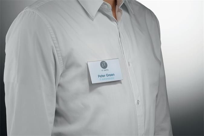 Elegantní a praktická jmenovka. Vhodná zejména pro lidi, kteří se hodně pohybují, např. na konferencích a velkých akcích.