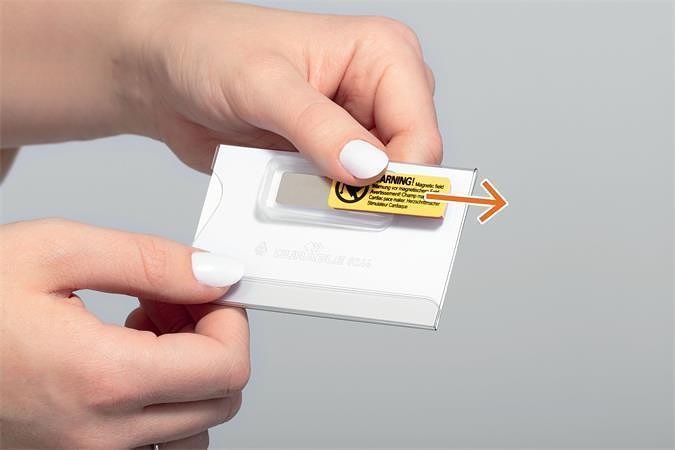 Speciální zapínání, které zabraňuje otáčení, sklouznutí nebo uvolnění jmenovky při nošení. Snadné připevnění magnetem, nepoškozuje materiál.