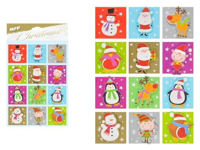Jmenovky na dárky 12ks vánoční 3D glitr